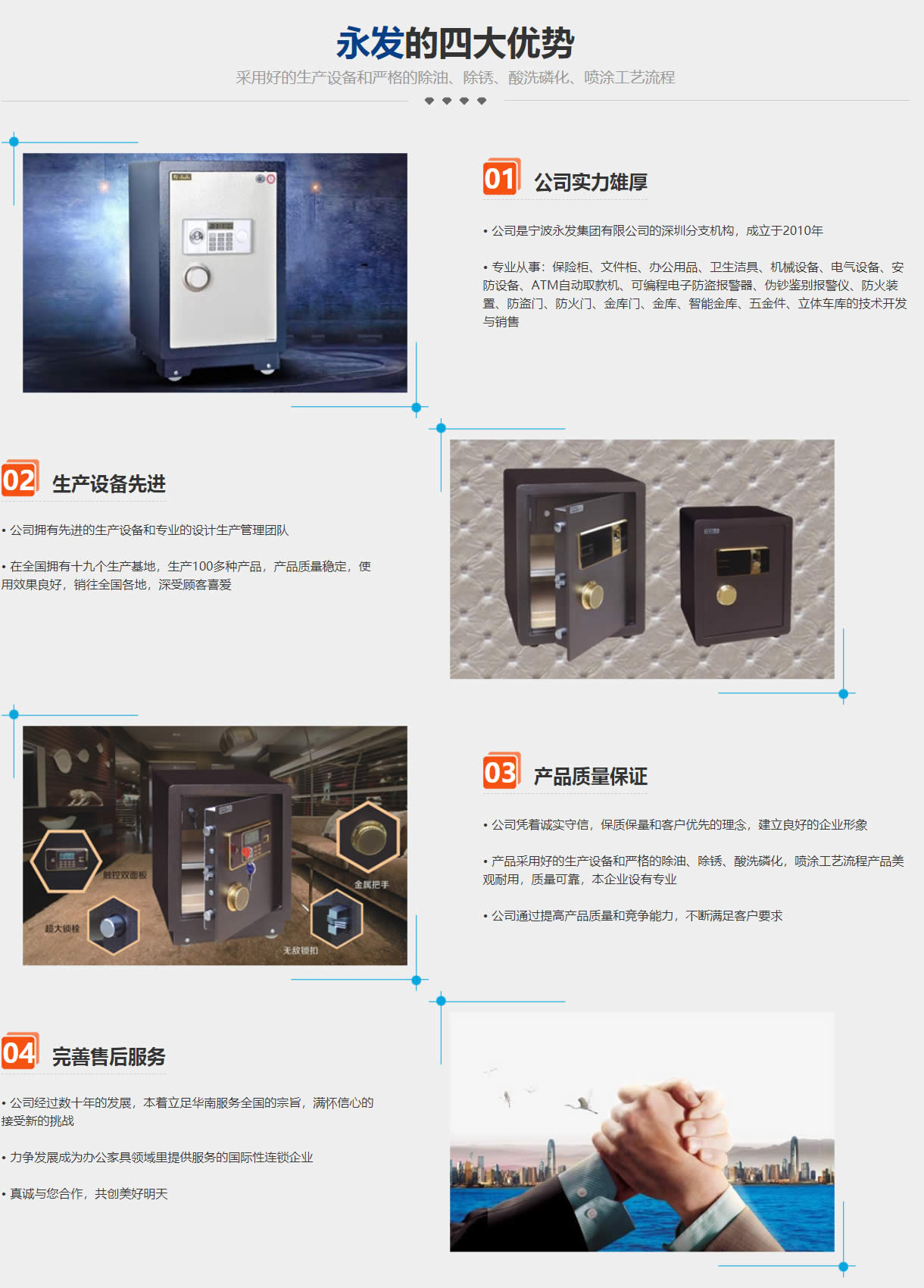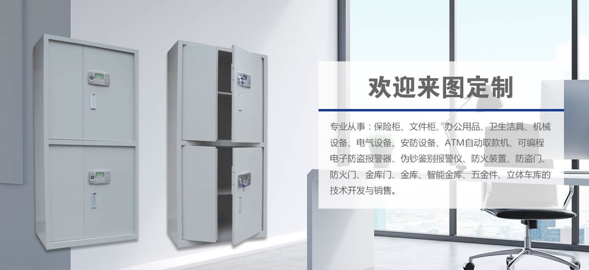 ? 專業從事:保險柜、文件柜、辦公用品、衛生潔具、機械設備、電氣設備、安防設備、ATM自動取款機、可編程電子防盜報警器、偽鈔鑒別報警儀、防火裝置、防盜門、防火門、金庫門、金庫、智能金庫、五金件、立體車庫的技術開發(fā)與銷售